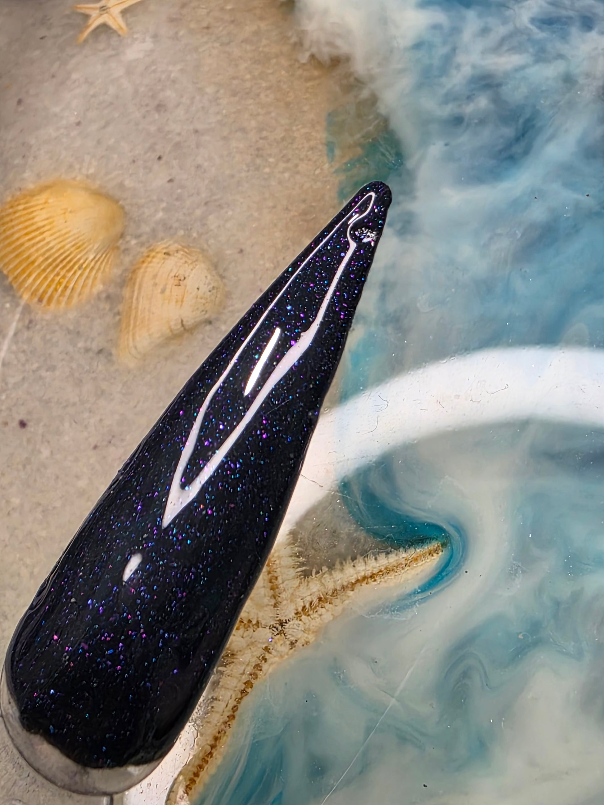 Beautiful iridescent shimmery black. Shimmers purple, blue and pink like a galaxy