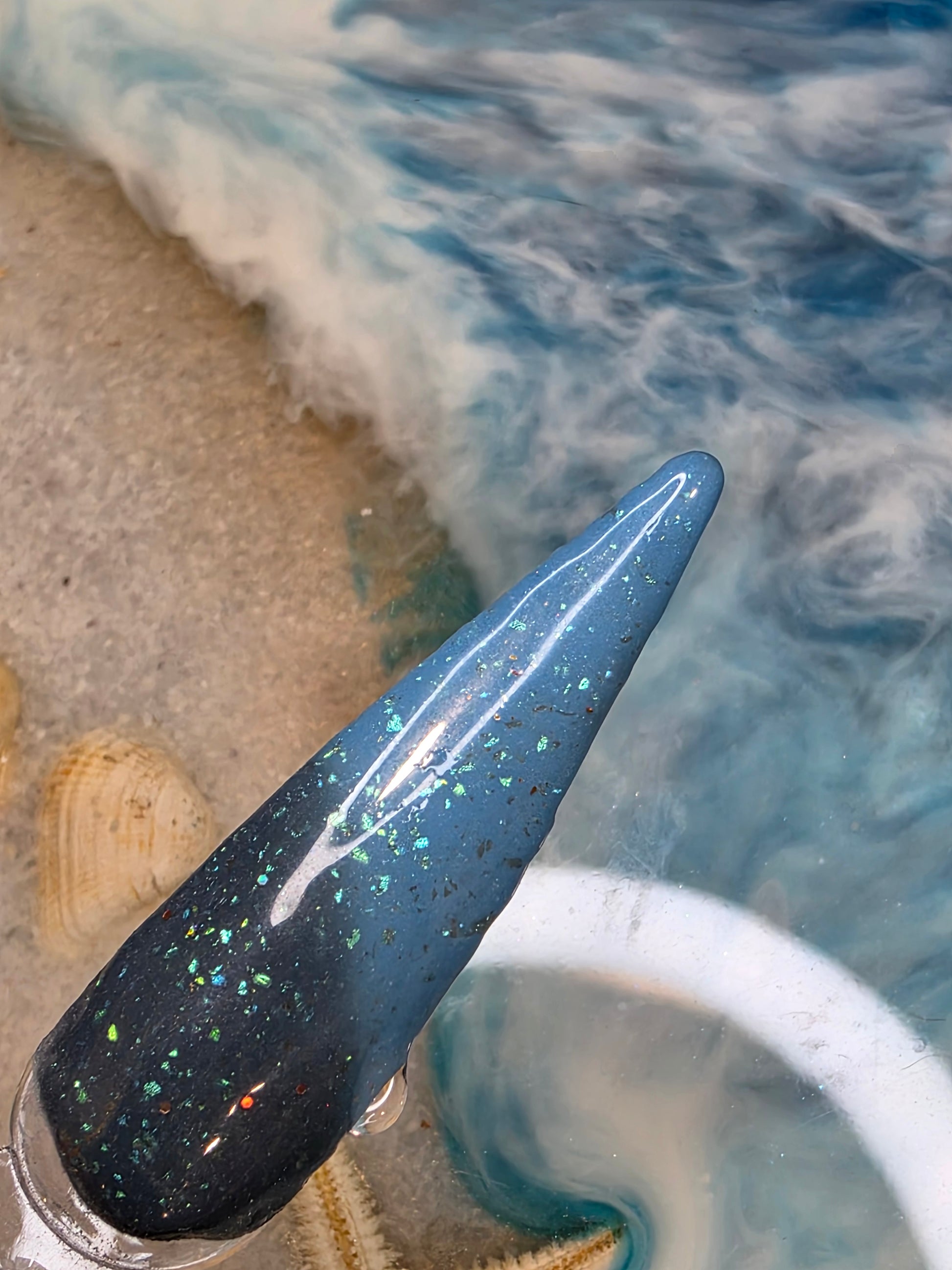 Black to blue thermal with turquoise iridescent flakies. Black when cold to blue when hot