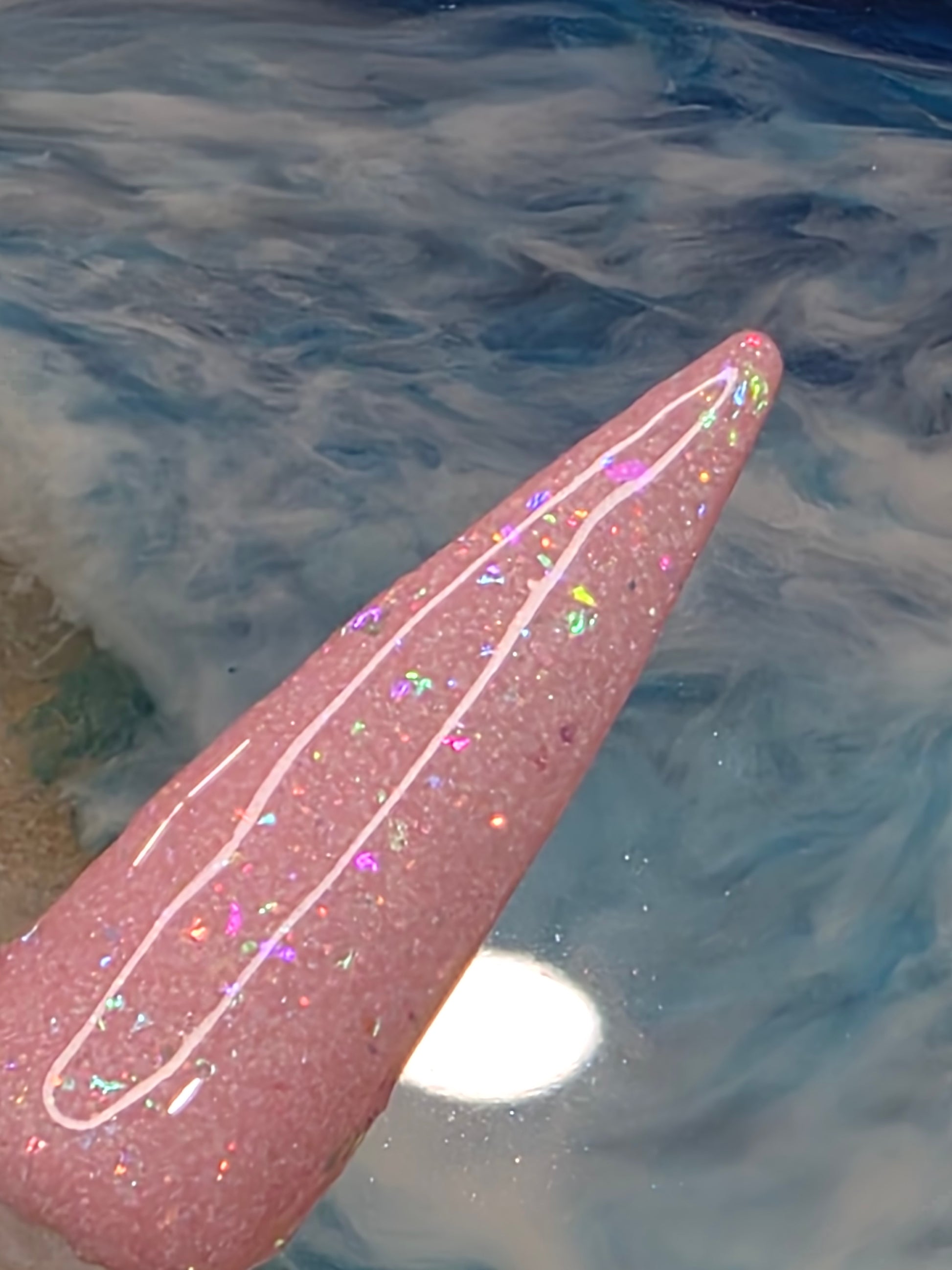 Pastel pink color with iridescent fine glitter and iridescent flakies