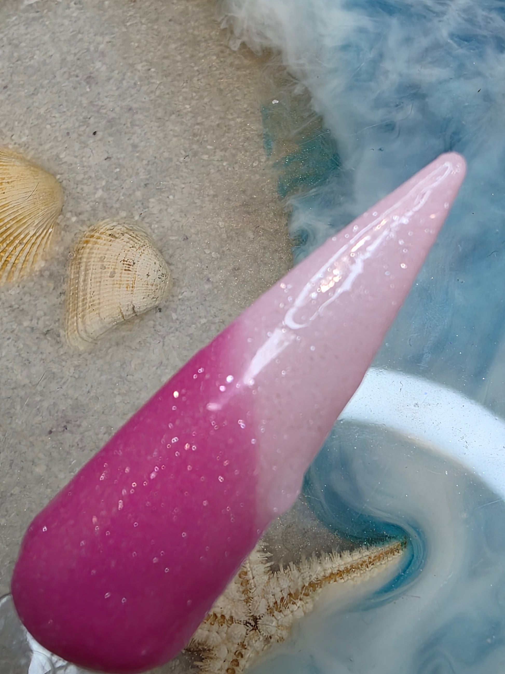 Dark pink to light pink thermal with shimmer. Dark pink when cold to light pink when hot.