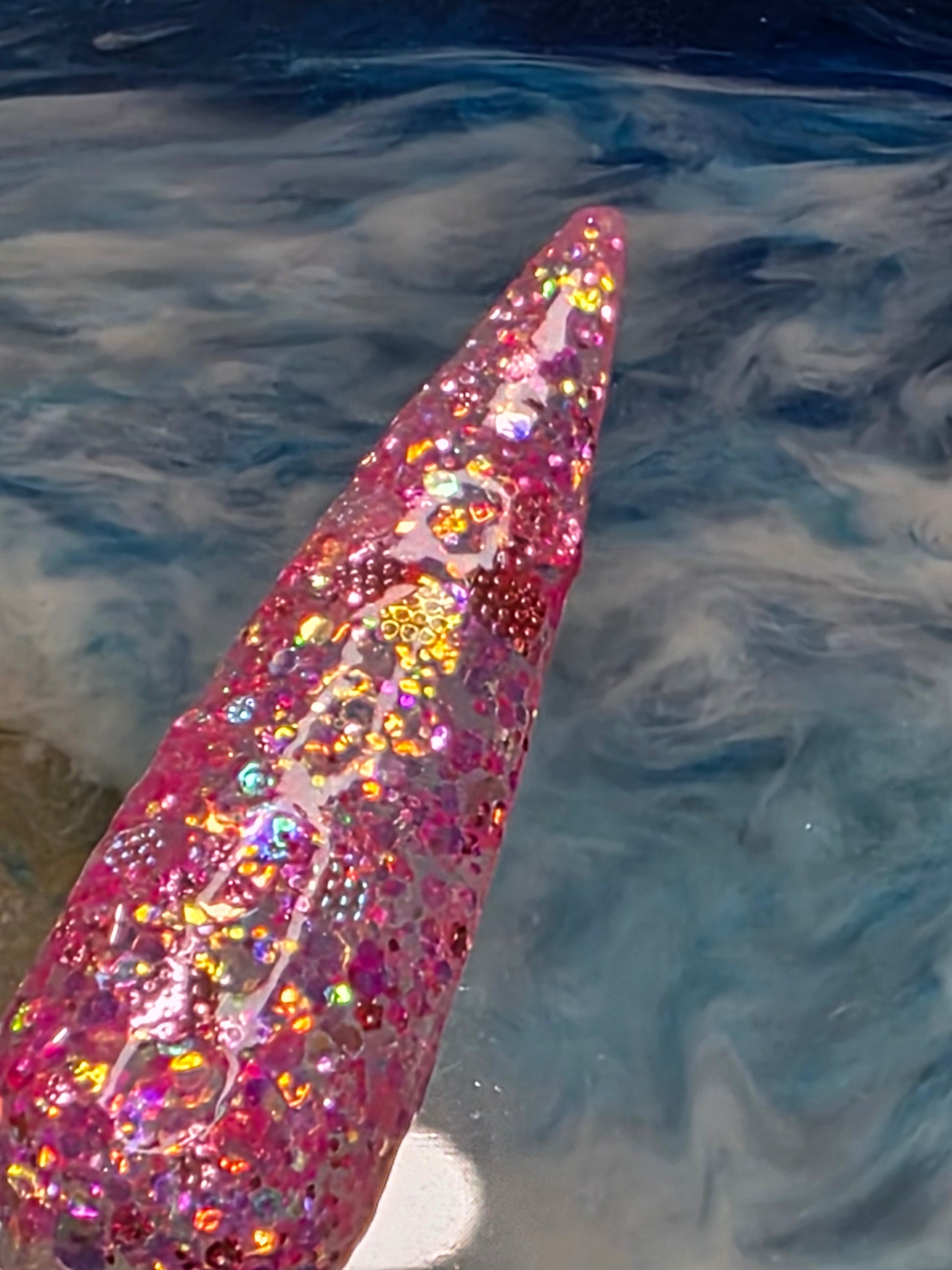 Textured silver and pink glitter mix with chameleon pink and gold glitter
