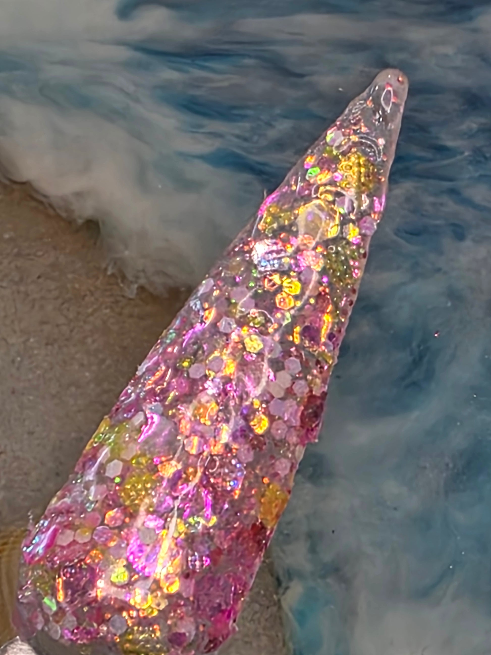 Textured gold glitter, iridescent pink glitter and white glitter mix