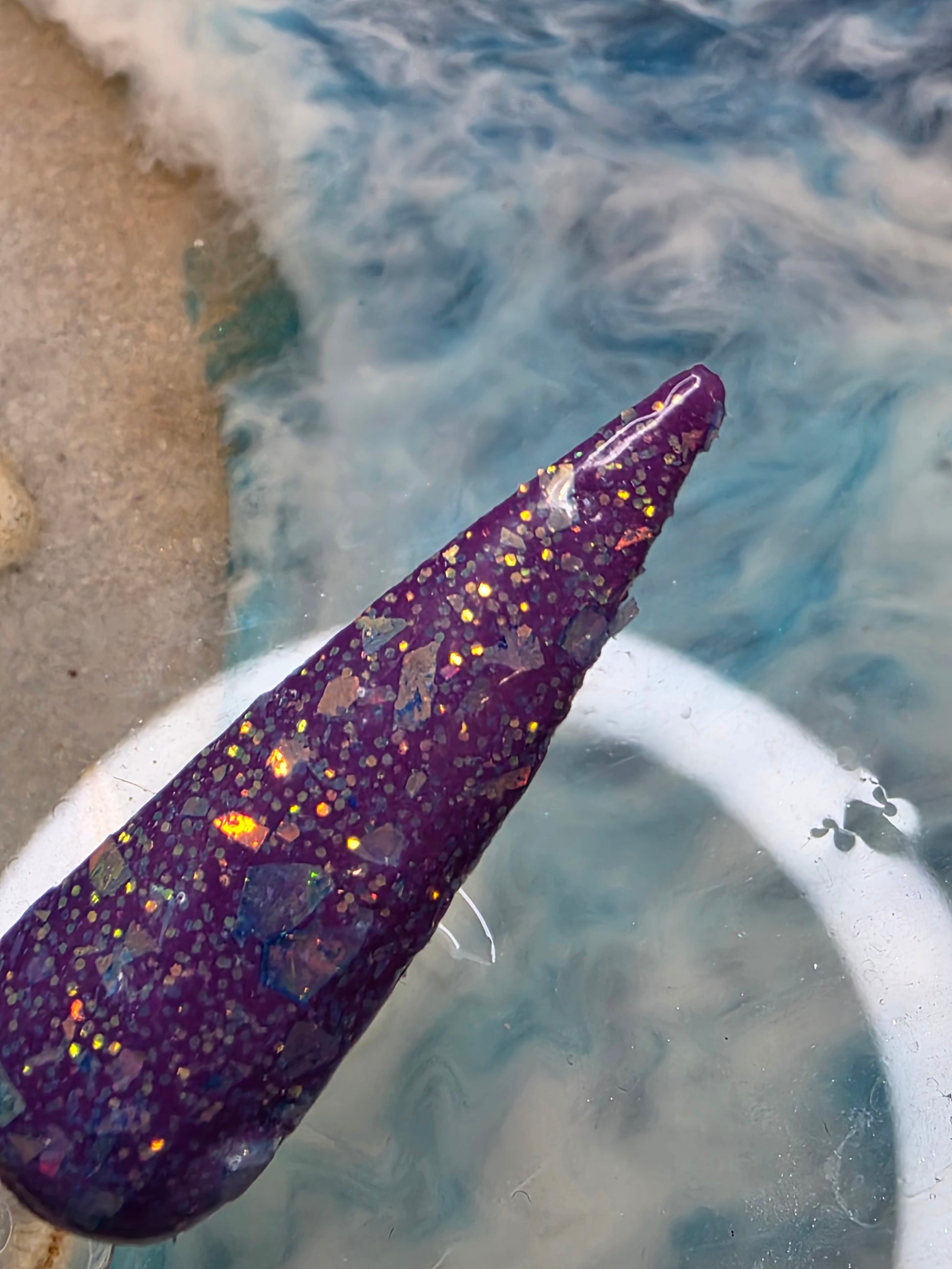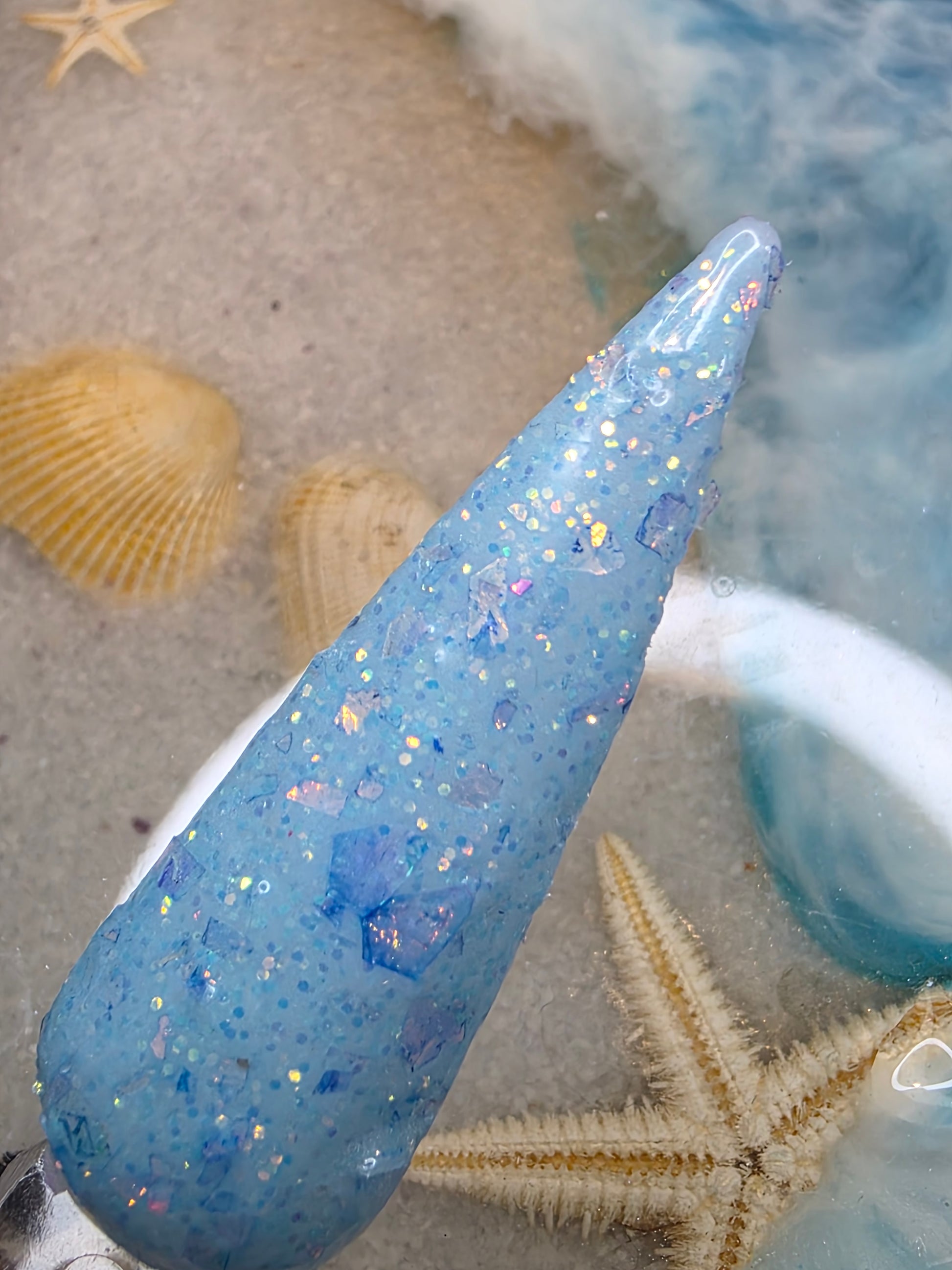 Sky blue to purple Uv Changer with iridescent glitter mix. Blue with no UV to purple with UV.