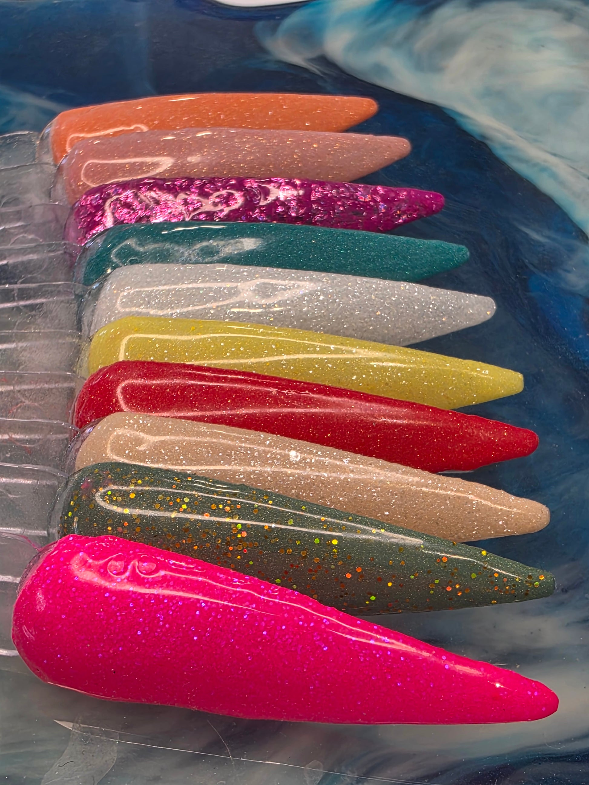 Tropical Christmas Collection includes 10 - 10G or 3G colors, Sunkissed Noel, Island Glow, Holiday Hibiscus, Beach Please, Coconut Snow, Pineapple Express, Santas Cabana, Tinsel & Tanlines, Mele Kalikimaka and Flamingo Sleigh Ride